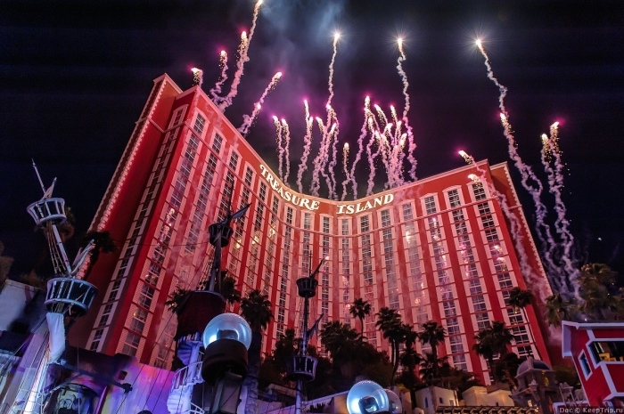 Сражение двух пиратских кораблей – это одно из самых известных шоу в Лас-Вегасе, а увидеть его можно на территории казино с соответствующим названием «Остров сокровищ». Представление проходит каждые полчаса, а начинается после шести вечера. В воздухе свистят абордажные крючья, пушечные ядра пролетают прямо возле зрителей, взрываются бочки с порохом. Актеры, наряженные в костюмы пиратов прыгают в воду и громко вопят. Но все ждут момент, когда же наконец-то раздастся оглушительный взрыв и корабль, который получит пробоину, отправится на дно. Его потом конечно достанут из бухты, а представление начнется с самого начала.
